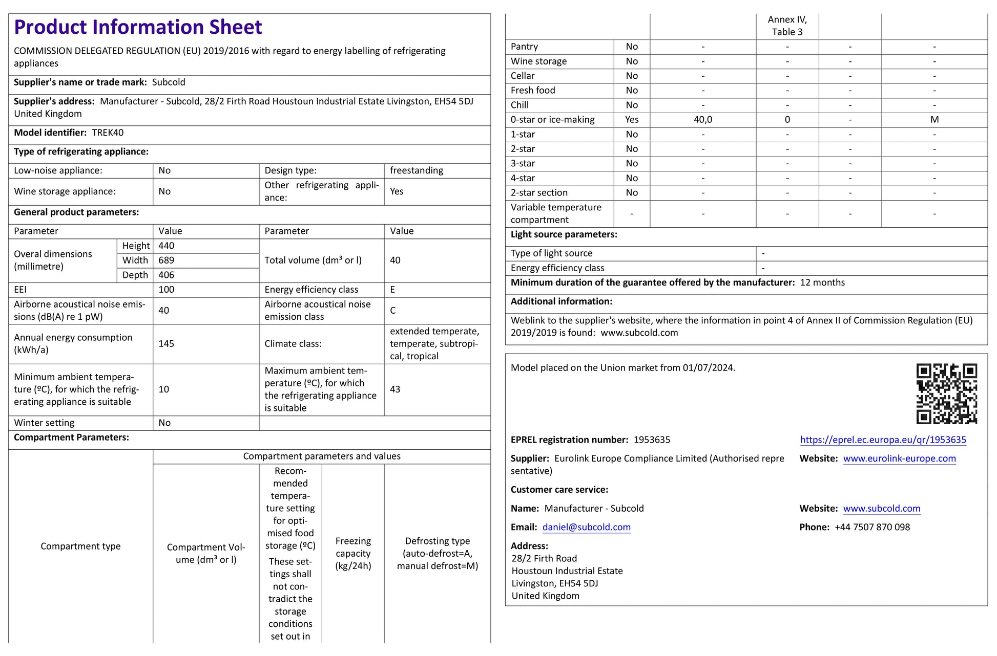 *Please Note: The Subcold Trek40 has a temperature range of +24°C to -22°C; however, it is a cooling appliance only and does not include a heating function. The maximum achievable temperature is dependent on the ambient environment. For example, if the external temperature is 10°C, the unit can cool below this level but cannot heat above it.