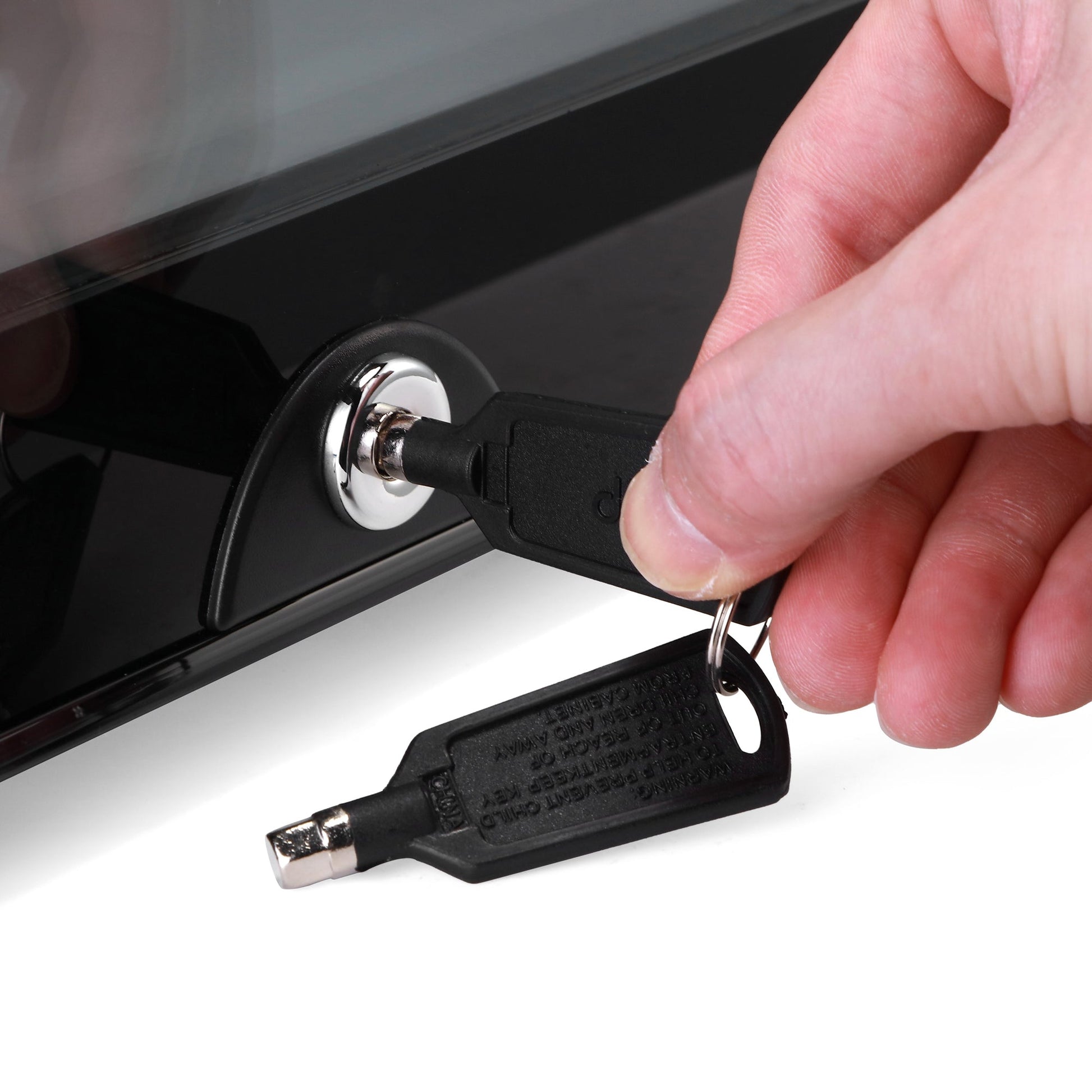 A mini fridge with a built-in security lock to keep your alcoholic beverages safe and secure from unauthorised access. A set of two keys is provided with the fridge.
