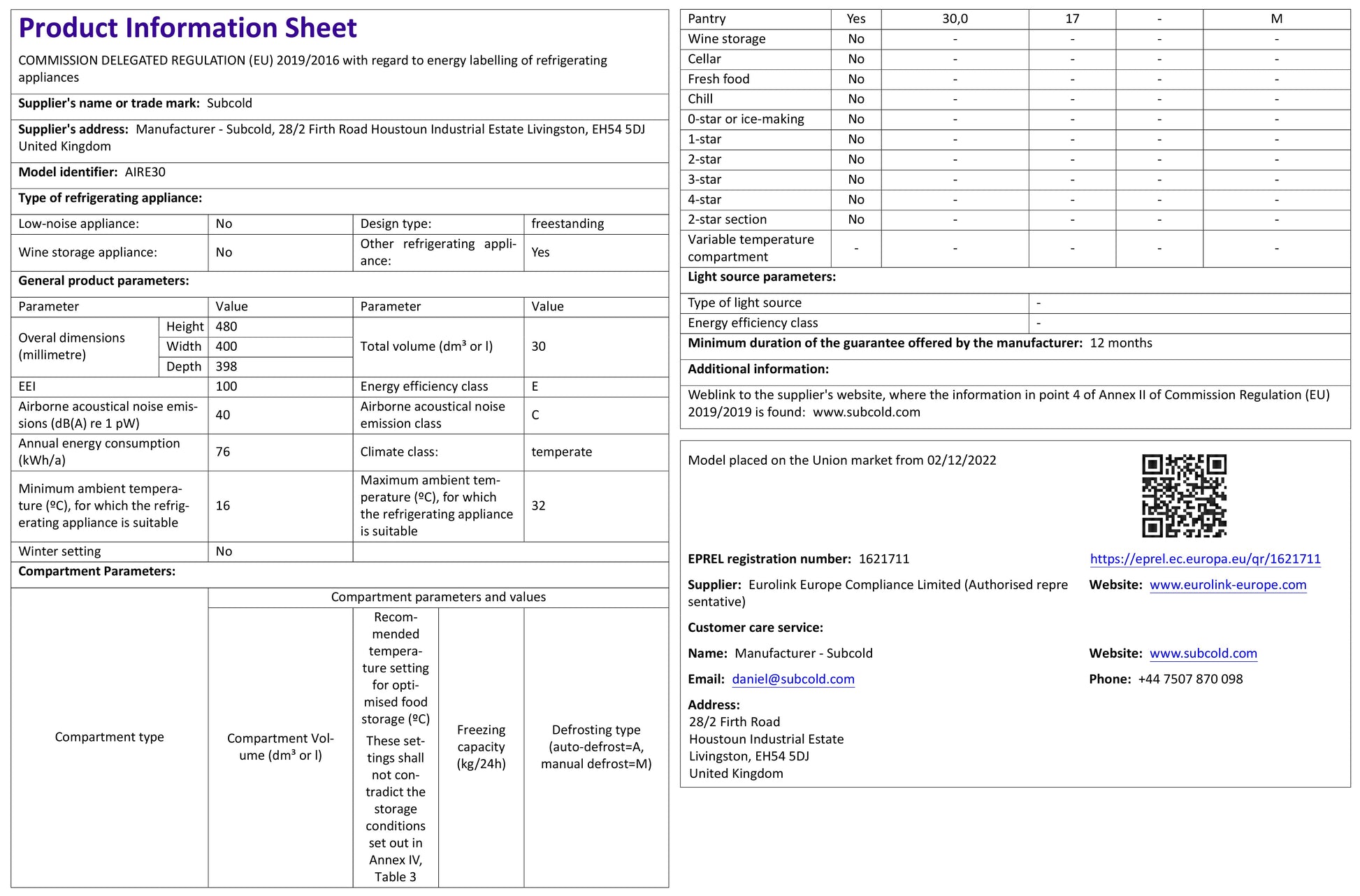 The Subcold Aire30 is equipped with premium thermoelectric technology cooling for optimum performance. It is a very economical fridge with an impressive energy consumption of only 76kWh / per Year