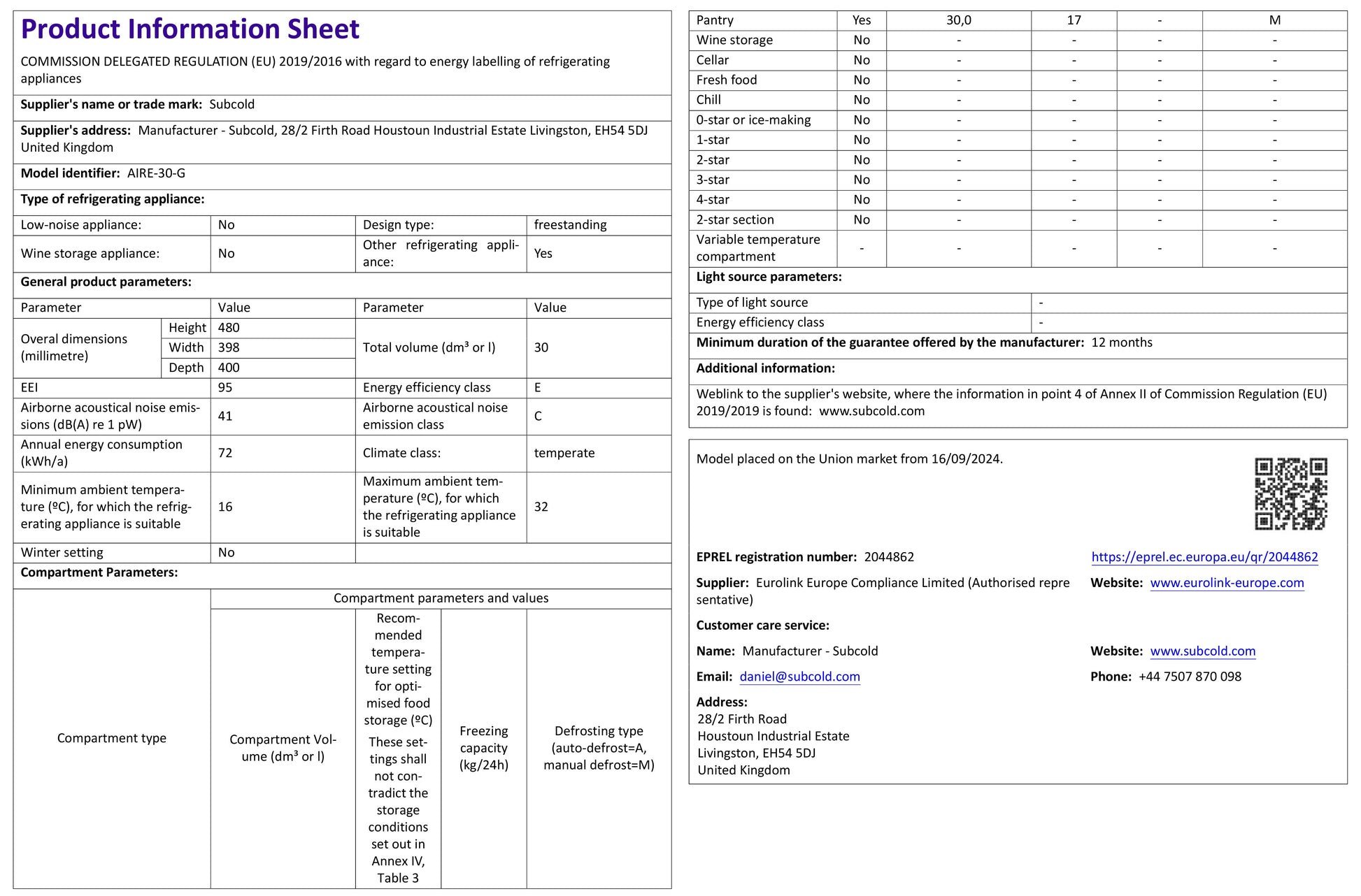 The Subcold Aire30-G is equipped with premium thermoelectric technology cooling for optimum performance. A quiet (41dB) and economical fridge with an impressive energy consumption of only 72kWh / per Year