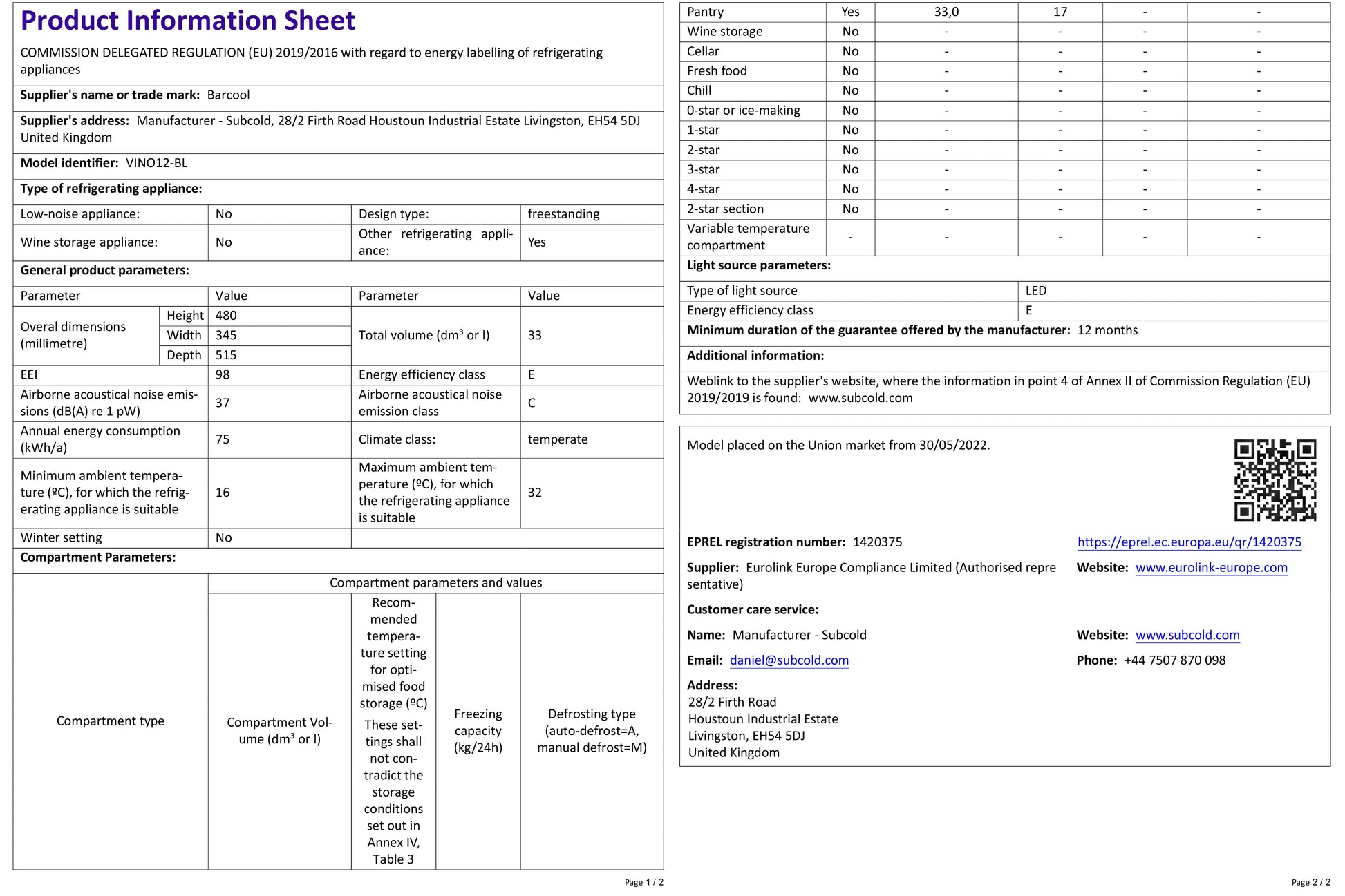 The Barcool Vino12 is equipped with advanced thermoelectric technology cooling for optimum performance. It is a very economical fridge with an impressive energy consumption of only 75 kWh/annum.