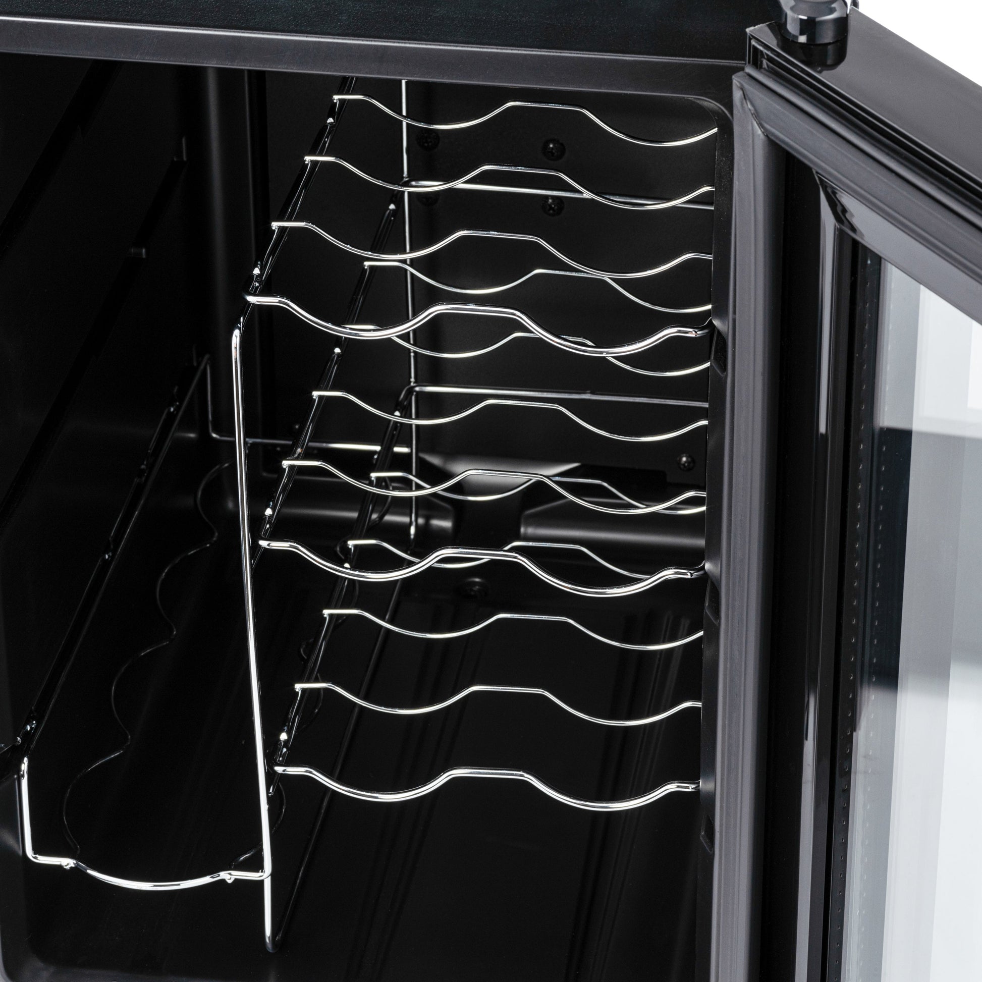 The ultimate compact wine cooler. It comes with a removable chrome wire shelves unit. You can also store 2 (75cl) bottles vertically which is ideal for open wine bottles.