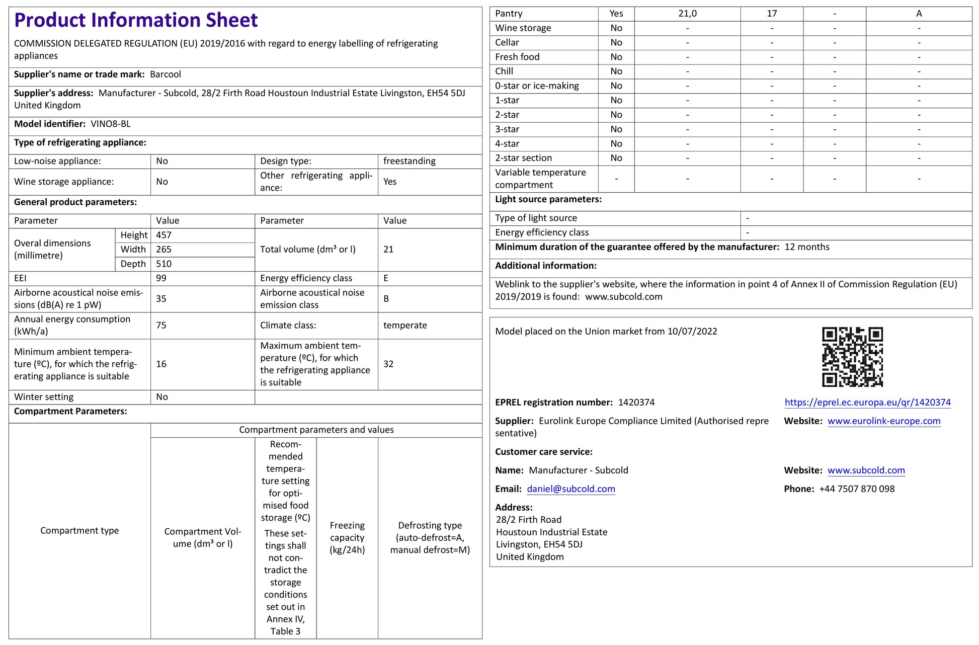 - Subcold Vino8 LED Wine Cooler Fridge