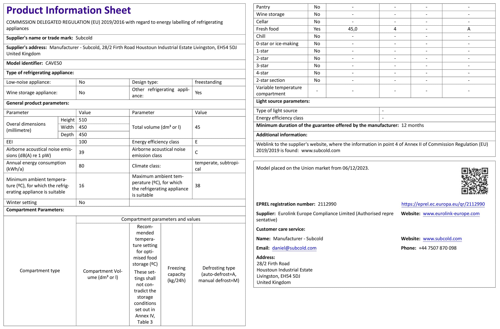 Elevate your beverage storage with the Subcold Cave50-SS, a stainless steel stylish and energy-efficient beer fridge designed to keep your drinks perfectly chilled. With a generous net capacity of 45 litres, this compact yet spacious mini fridge is ideal for homes, offices, and entertainment spaces.