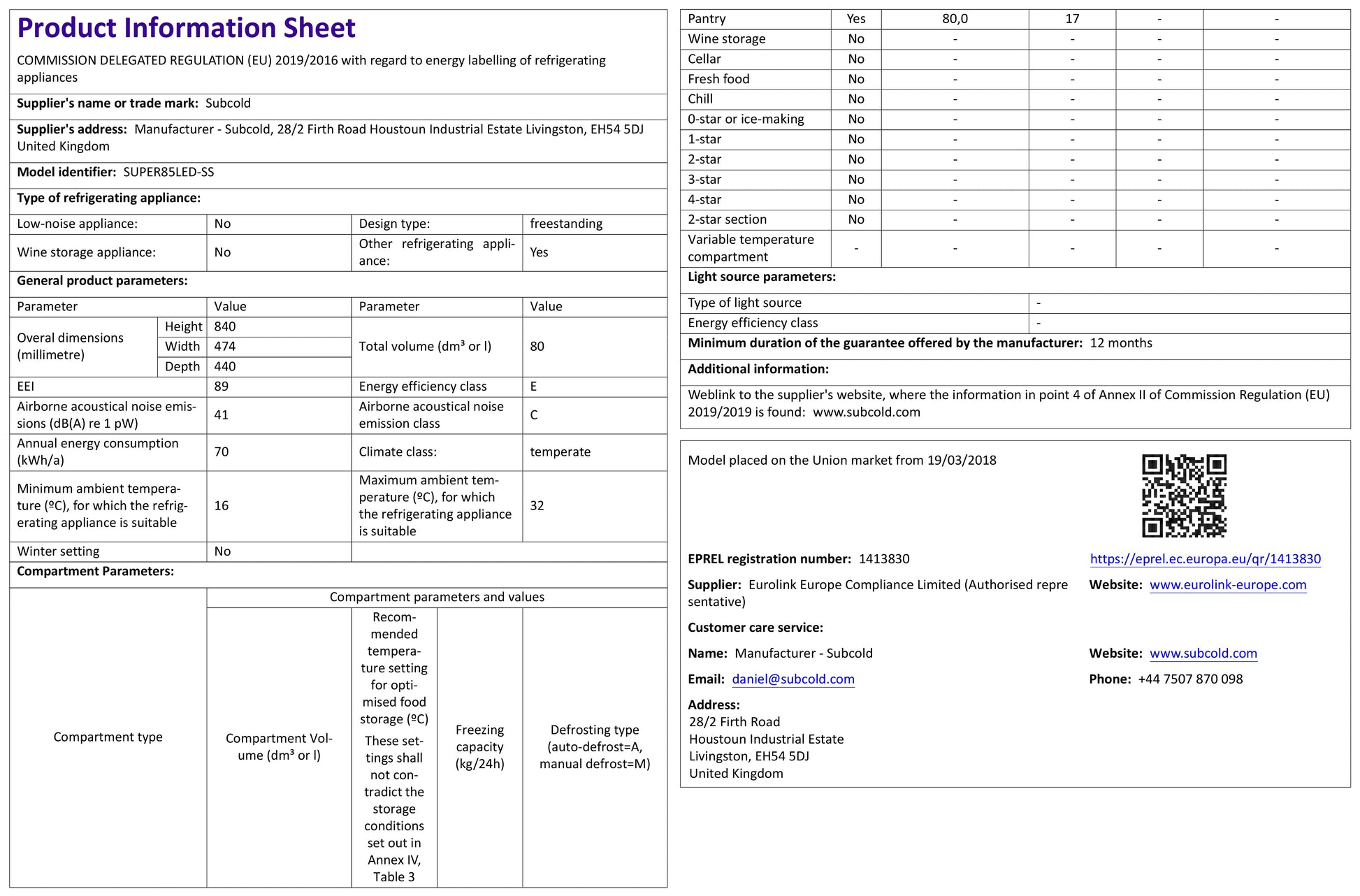 - Subcold Super 85 LED Stainless Steel Beer Fridge