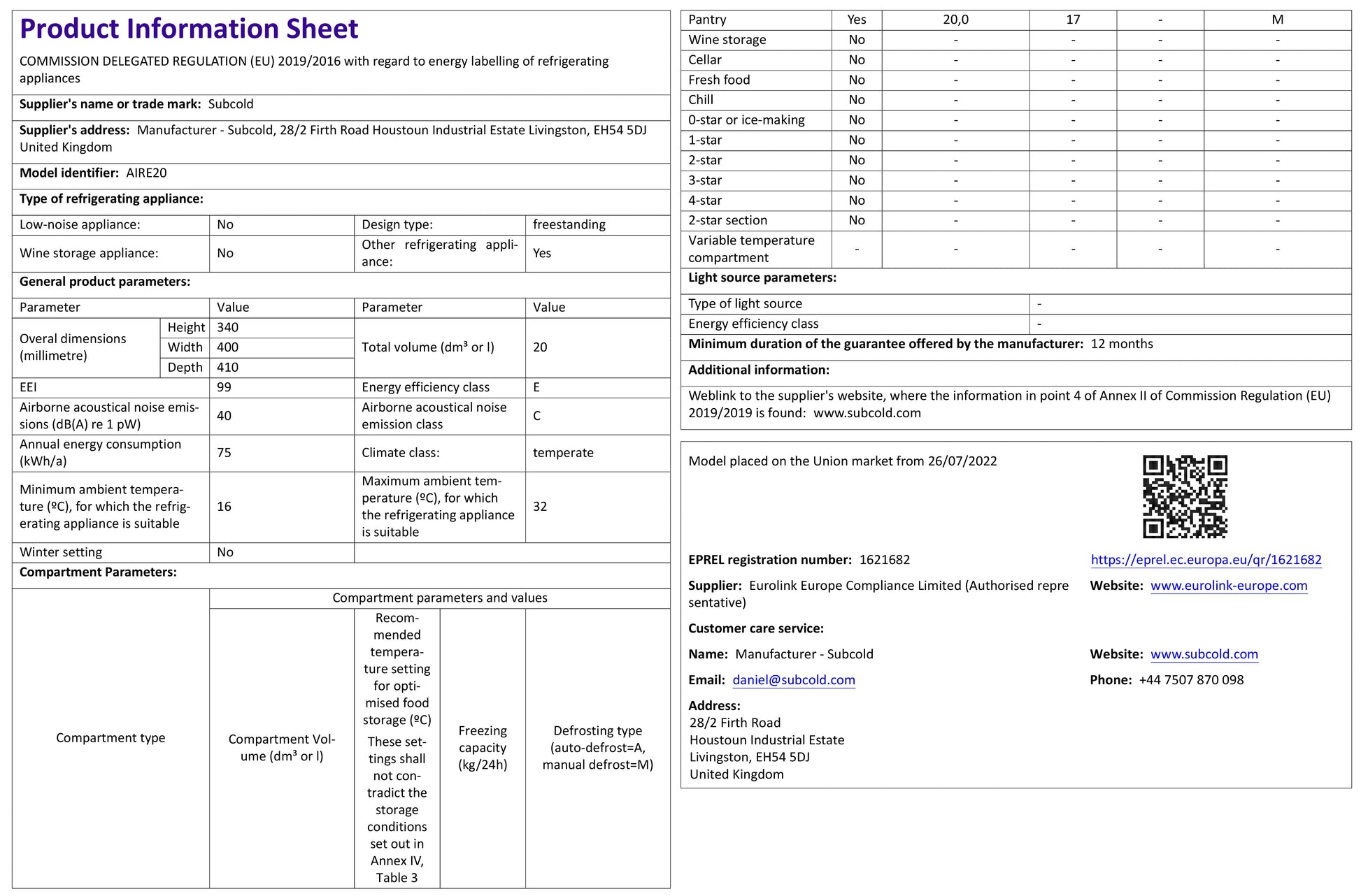 The Subcold Aire20 LED is a high-quality 20L modern and contemporary designed mini fridge / mini-bar. This advanced thermoelectric fridge is fully automatic, practical and versatile to your needs. It is tastefully designed for modern living. It features an adjustable thermostat with an internal temperature range of 3-15°C, perfect for all your favourite wines, beers, soft drinks and more!