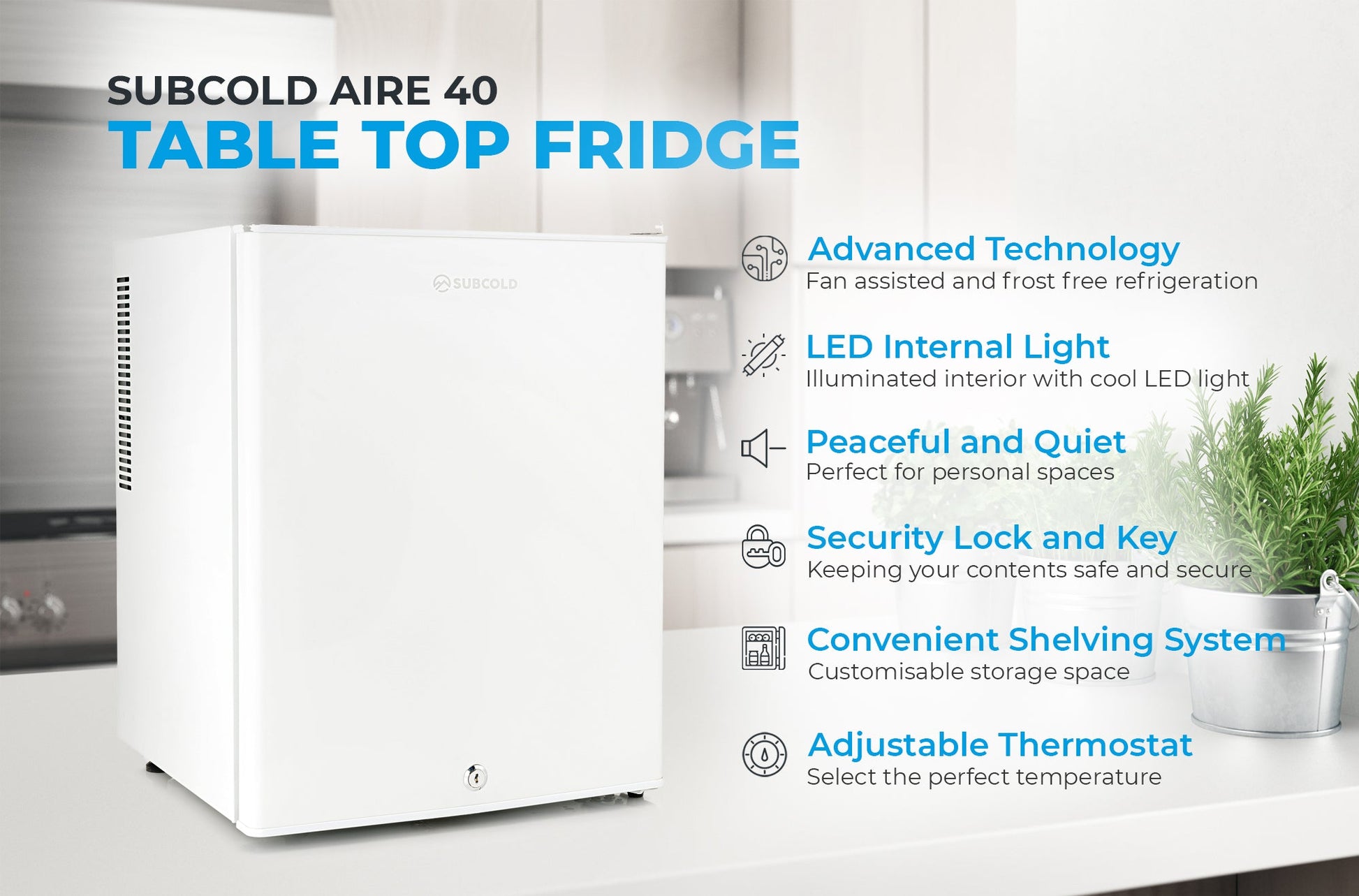 This mini fridge is compact while still providing plenty of storage with a net capacity of 40 litres. It can fit in many places, including kitchen counters, bedrooms, gaming rooms, offices, campervans, and motor homes.